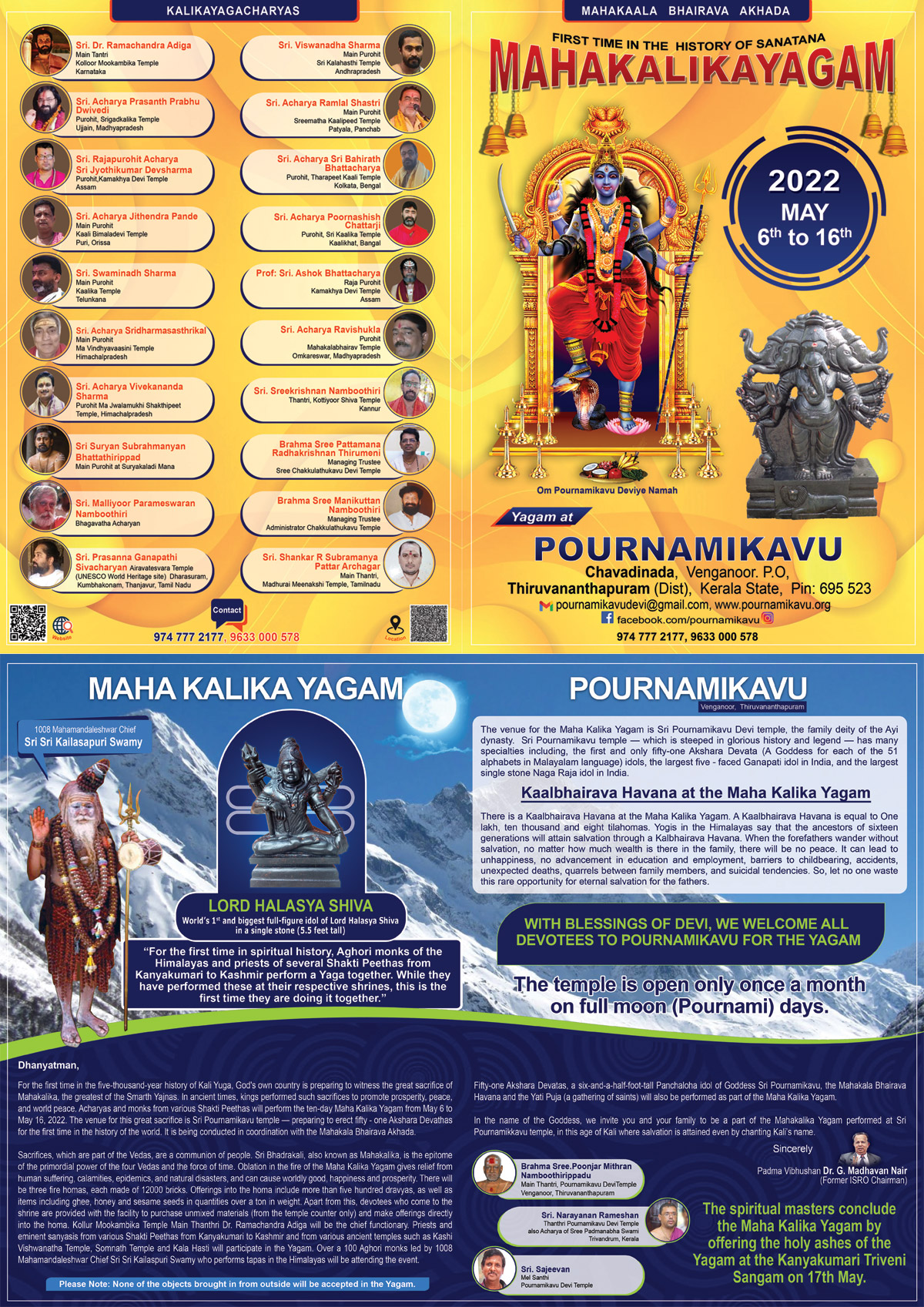 Pournamikavu Devi Temple, located in Venganoor, Thiruvananthapuram, Kerala, is a unique and significant place of worship. The main deity of the temple is Shri Bala Tripura Sundari Devi, the war-goddess of the Aay Dynasty, which reigned from the ancient city of Vizhinjam in Thiruvananthapuram.